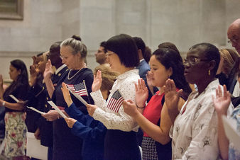 Thirty-one citizenship candidates become United States citizens during a naturalization ceremony to commemorate Constitution Day in the Rotunda of the National Archives in Washington, DC, on September 17, 2018. The Rotunda is the room where the Declaration of Independence, Constitution of the United States, and the Bill of Rights documents are on public display. (NARA Photos by Kelsey Bell)